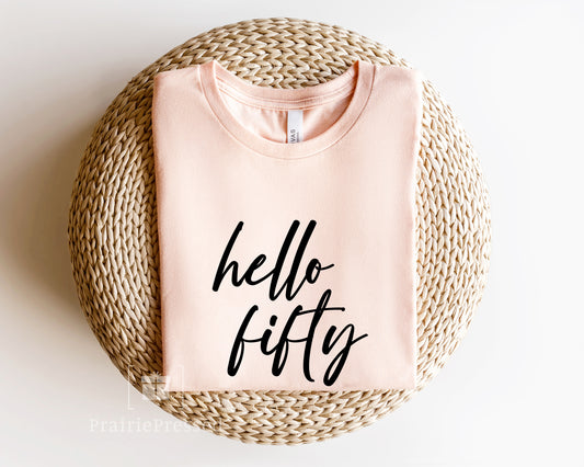 Hello Fifty - Custom Milestone Birthday T Shirt
