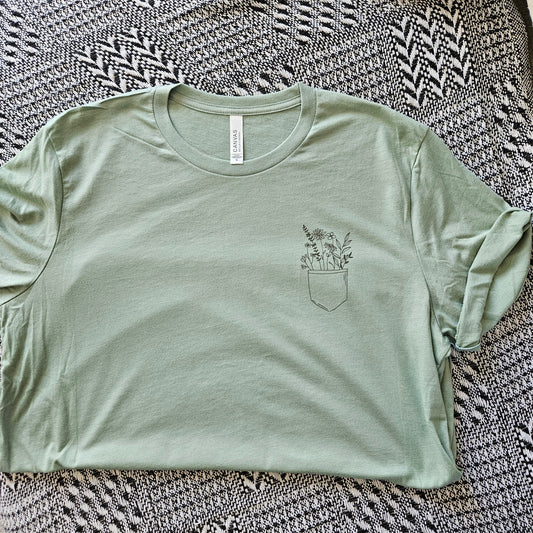 Pocket of Wildflowers - Sage XL Bella Canva T Shirt