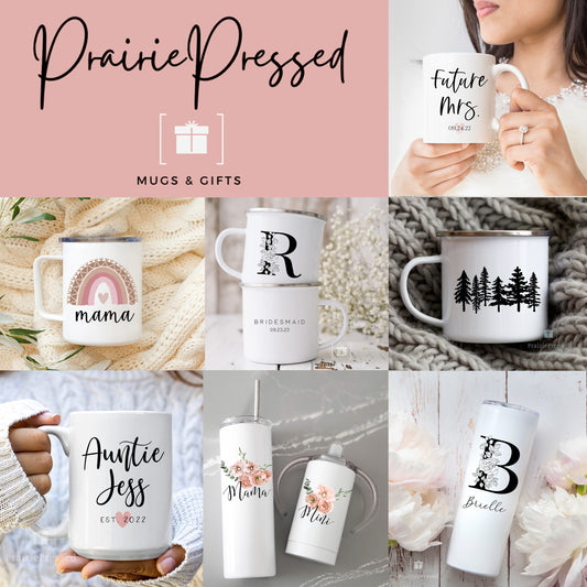 Black & White Bridesmaid Floral Monogram Enamel Mug