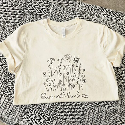 Bloom with Kindness Wildflower T Shirt - Medium Natural Color