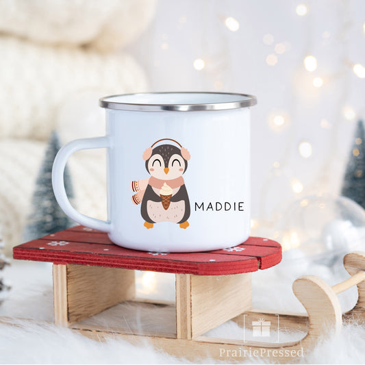 Winter Penguins Enamel Mug 12oz