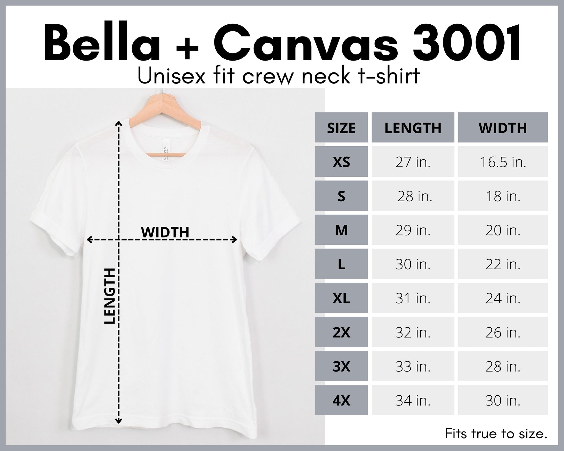 The Bella + Canvas 3001 tee is a unisex fit, meaning it’s a bit more slim through the midsection than a traditional men’s tee, but not quite as fitted as a women’s tee.